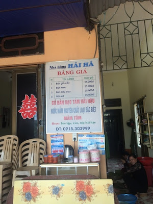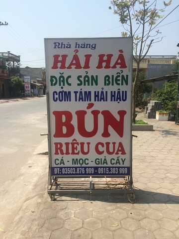 Vì có nghe người dân ở đây bảo Hải Thịnh chặt chém lắm, 1 bữa ăn có thể 5 triệu/6 người. 1 con cua giá 1 triệu. Thế là mình chỉ phóng xe dọc bờ biển, thỉnh thoảng dừng lại chụp vài kiểu ảnh, chứ mình không rẽ vào bất kỳ quán nào dọc đó ăn cả. Sau đó mình đi khoảng 500m ra phía đường lớn để tìm xem có quán nào ăn được không.